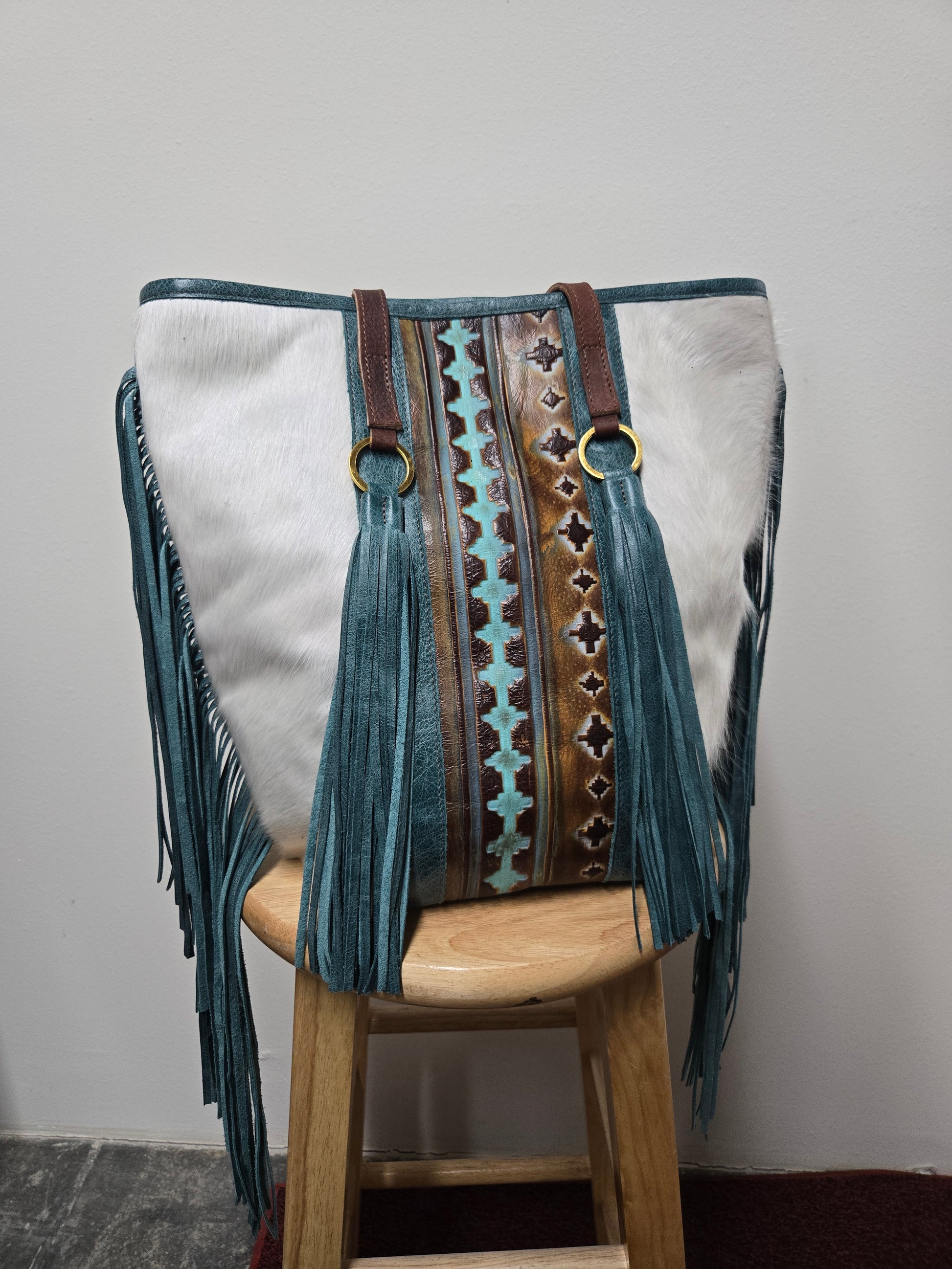 Lady hand bag classic tote made-fringe attached beautiful looking made in USA in co hide leathe